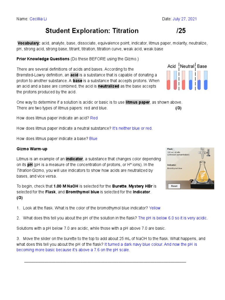 Check spelling or type a new query. Student exploration titration gizmo answer key. We did not find results for: Maybe you would like to learn more about one of these?